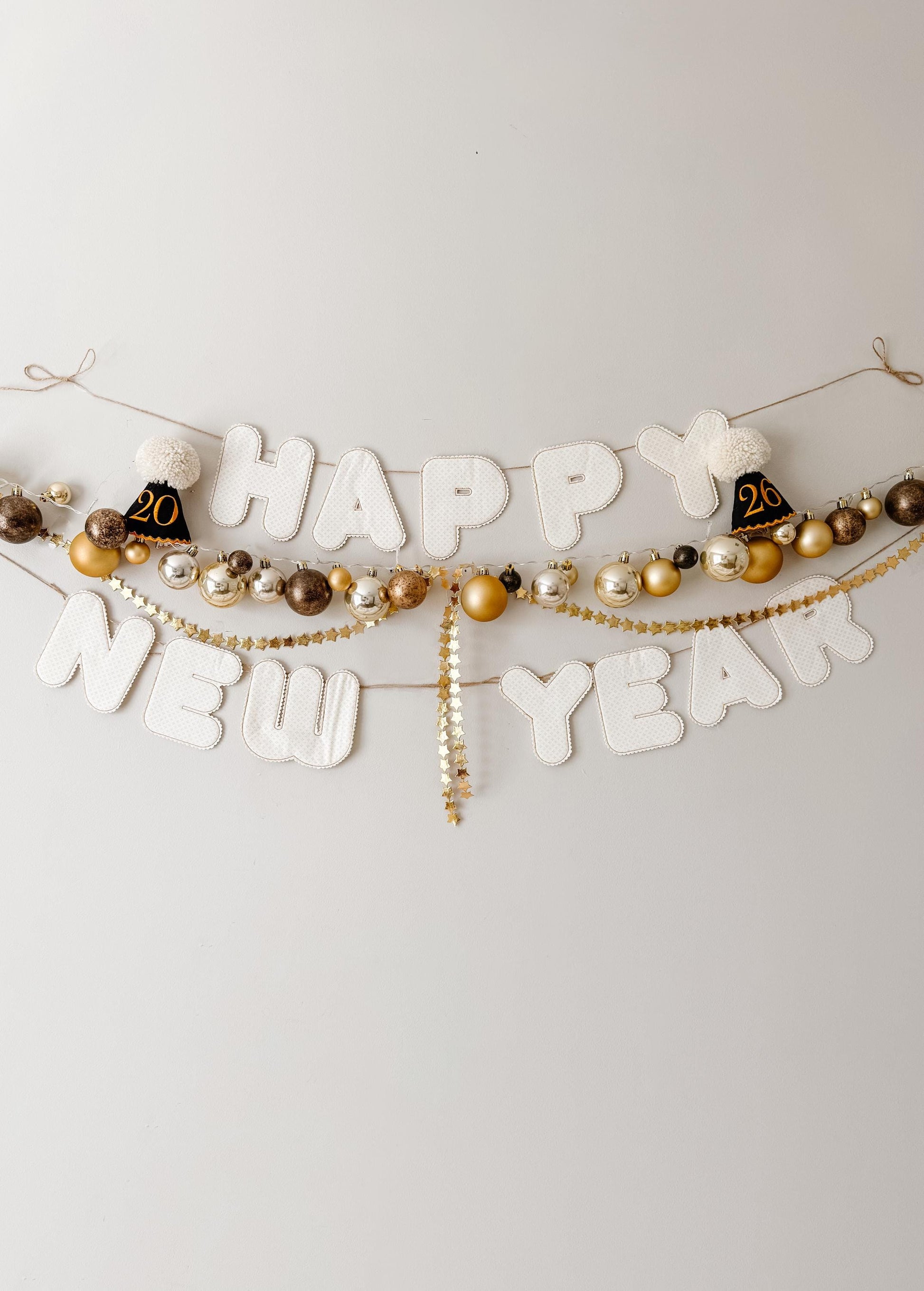 banners arrive with letters strung on twine only. ribbons, bows, and greenery shown in photos are styling props and not included.
