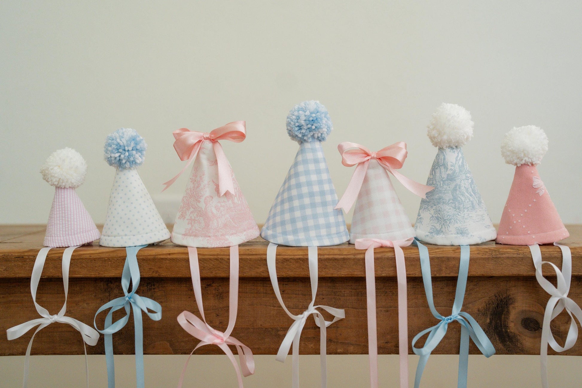 Stuffed Animal Party Hats – Set of 5 Grandmillennial Toile and Seersucker Hats